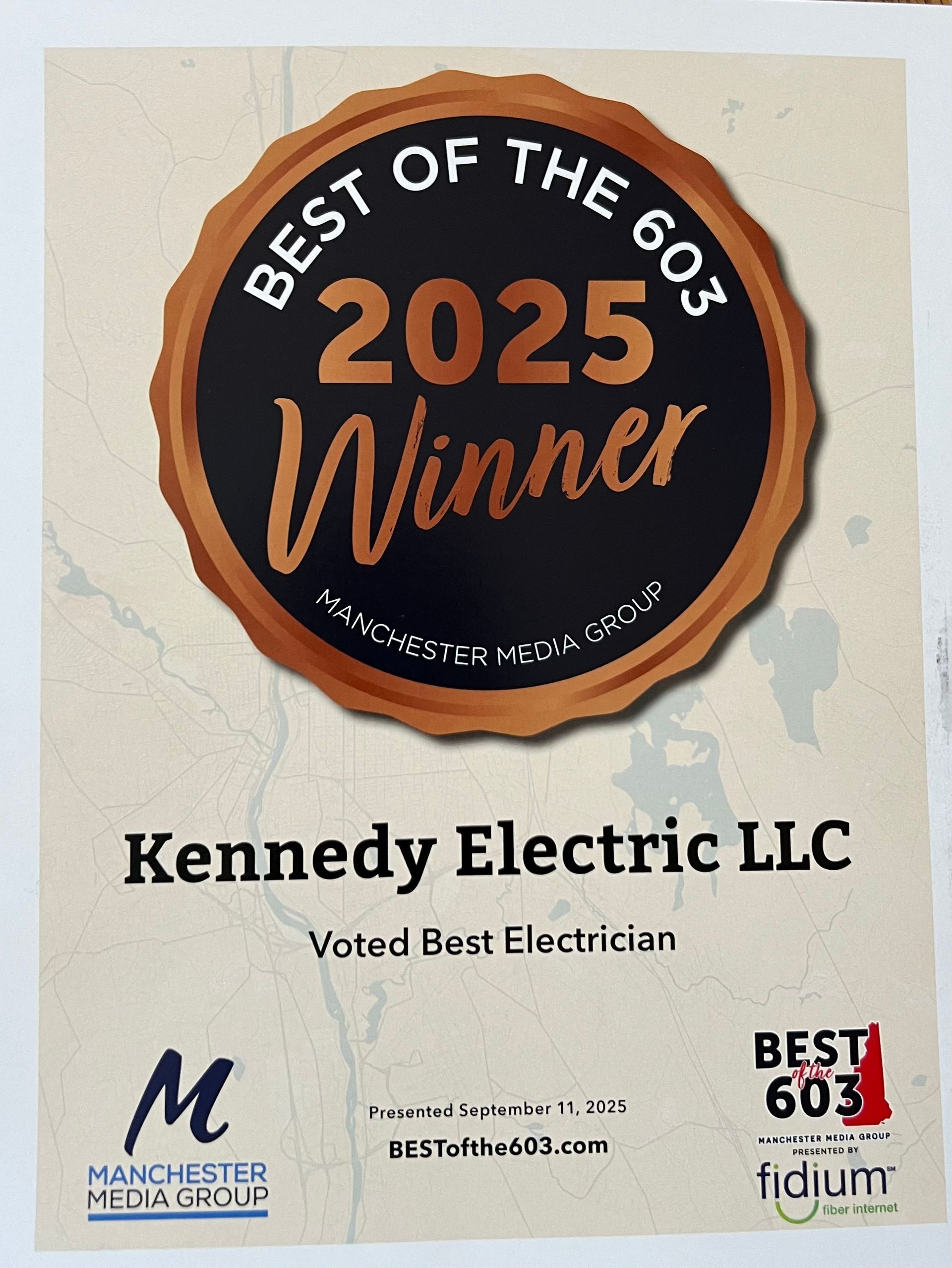 Kennedy Electric LLC!! Proud To Be Voted Best of the 603 for Electrician